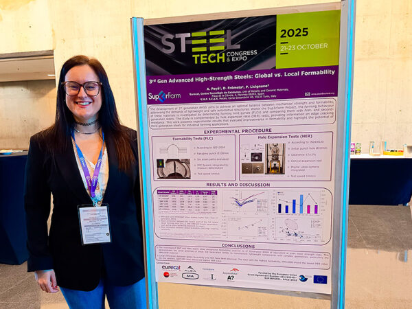 In the poster area, Eurecat presented the results of the Sup3rForm project, which investigates the formability of third-generation advanced high-strength steels (AHSS) through the development of forming limit curves (FLC) and their comparison with first- and second-generation steels.